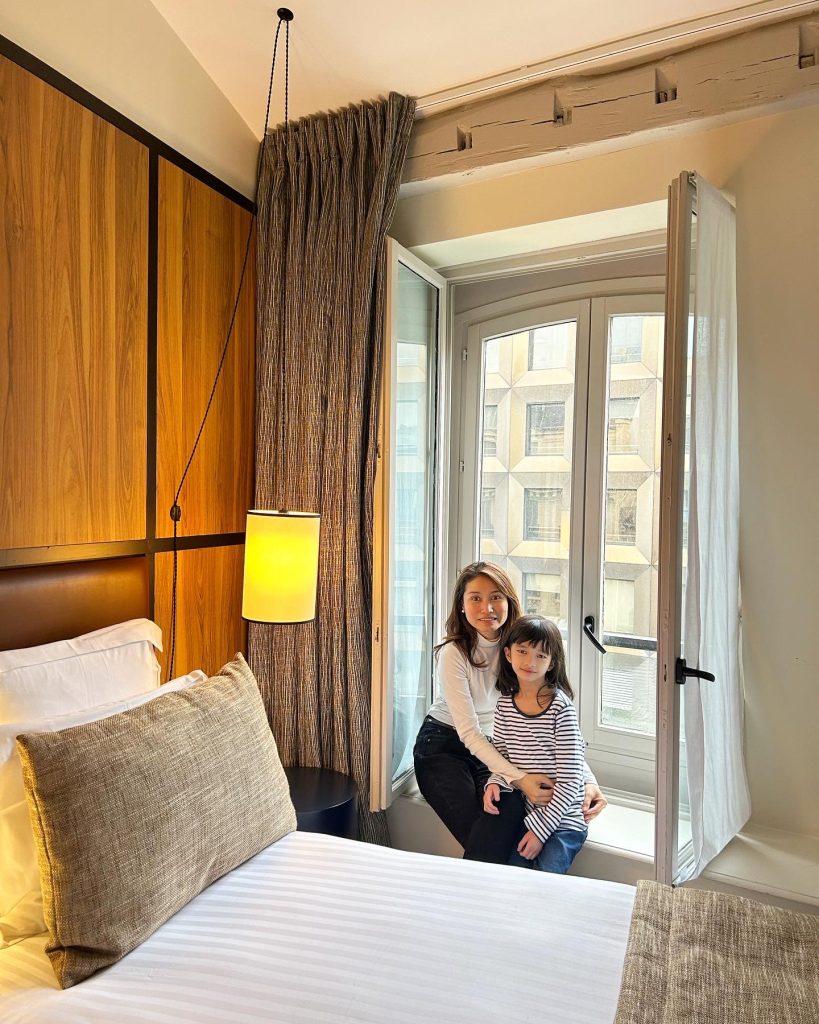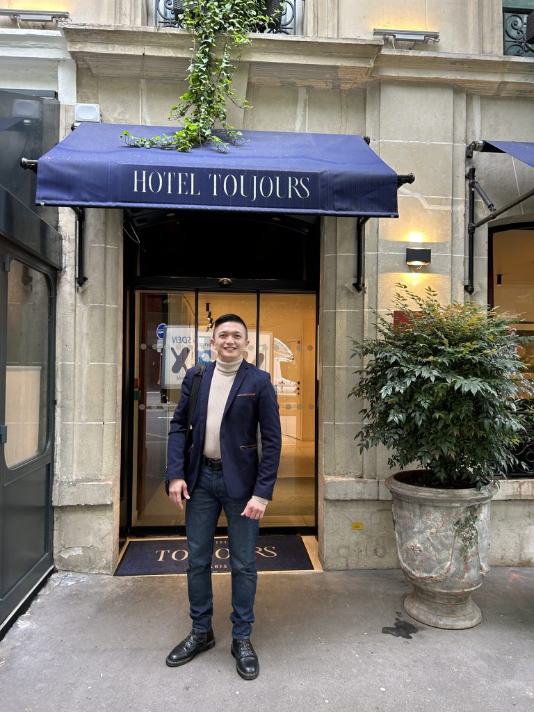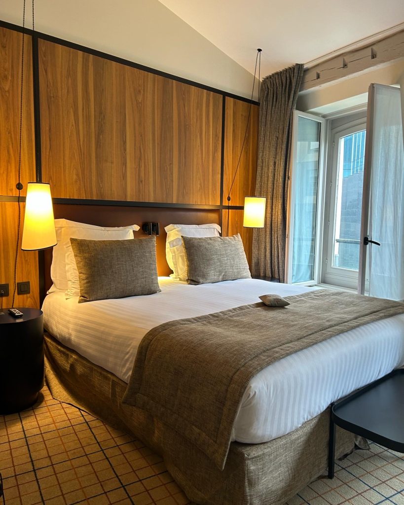 Okay, so that was a wrap from Hotel Bleu, and now second on my list is Hotel Toujours, which in English is “Hotel Always.” I went to this hotel in 2023. Hotel Toujours is a small, quiet, very beautiful hotel in the heart of Paris. This hotel is great for long stays, but somewhat pricey. The rooms are to die for. These rooms are small but, warning, so comfy!