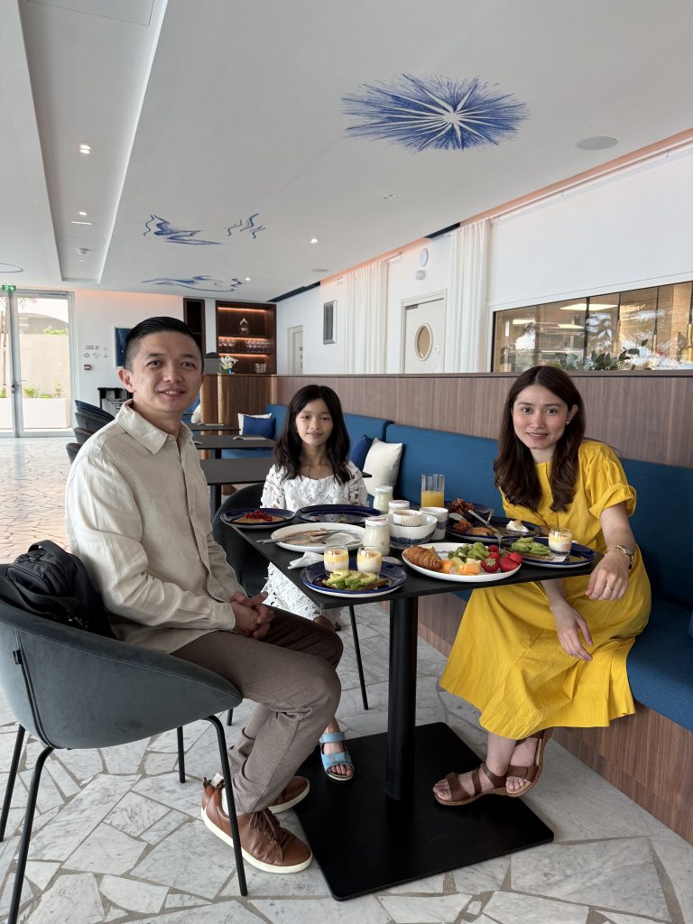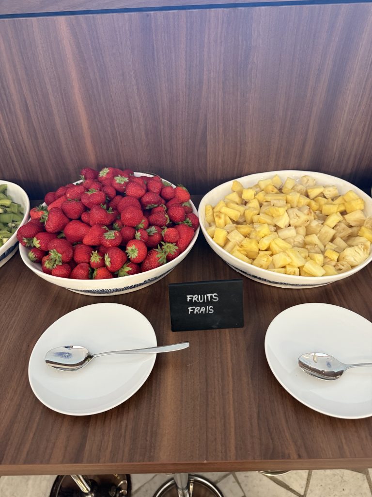 Now to the rooms. Can I just say that the rooms are like coming from a dream? The blue and white colours just make the room feel so welcoming, but also so calming. I love how the beds were super comfy and that you can also ask for extra pillows, which is great for people who love their pillows! When you wake up early in the morning, the breakfast is just so yummy. They have a wide selection from a buffet, but they also have a menu. You can find all the French foods at breakfast! But if you’re not so much of a breakfast person, then you may have to wait for the yummy lunch and dinner! This hotel is great for families, but also if you want somewhere not so crowded.