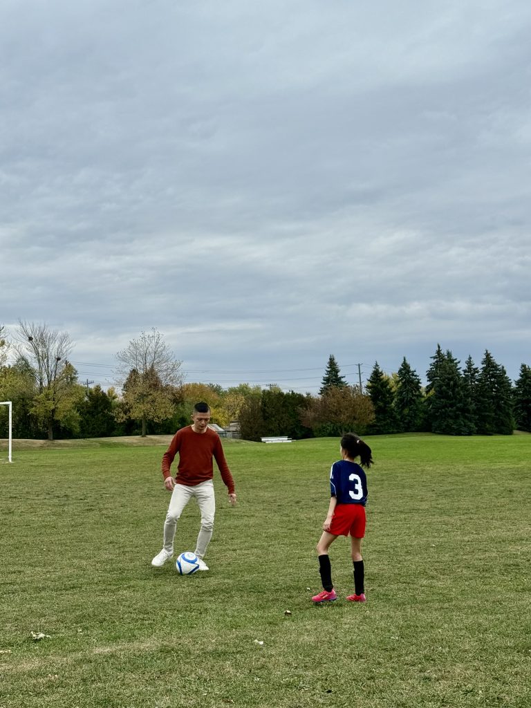 I started soccer in 2022 when I was 6 years old. Before that, I would always kick a small ball back and forth to the door. My dad heard all the banging from upstairs and knew that I might want to start soccer. A few months later, my dad enrolled me on a soccer team. At the beginning I was not that good, but through the years I started to get way better! Now here I am, loving soccer and playing every week!